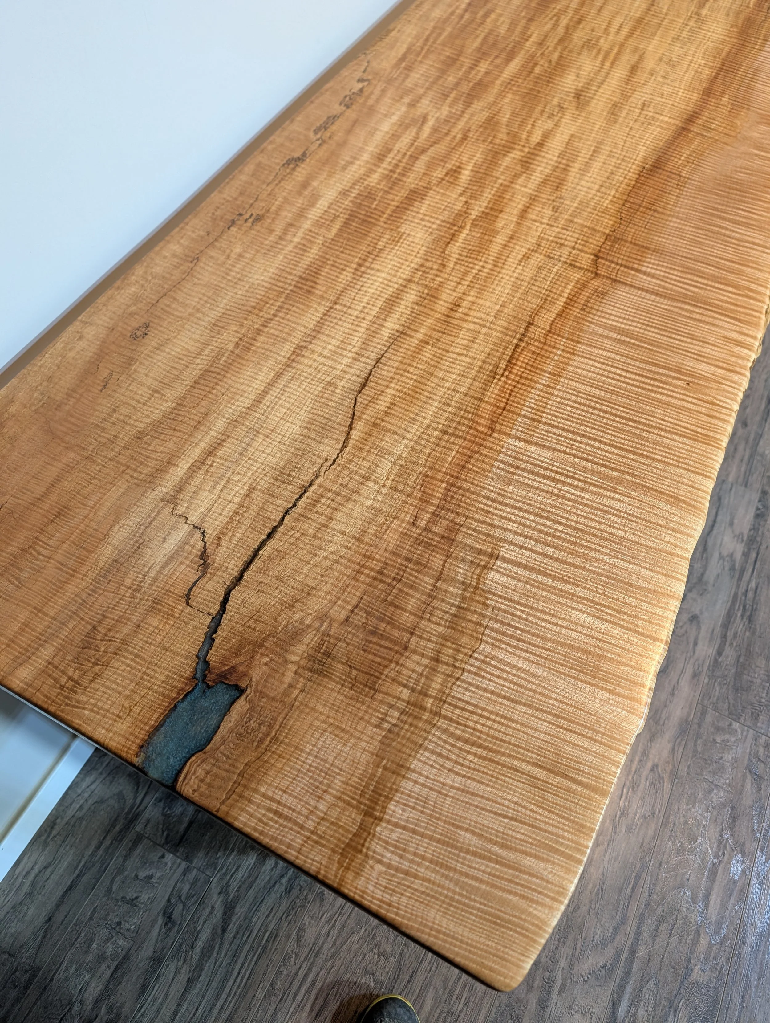 Newly finished west coast curly maple. With heavy 3D curling and a glass smooth surface this piece is sure to catch eyes!